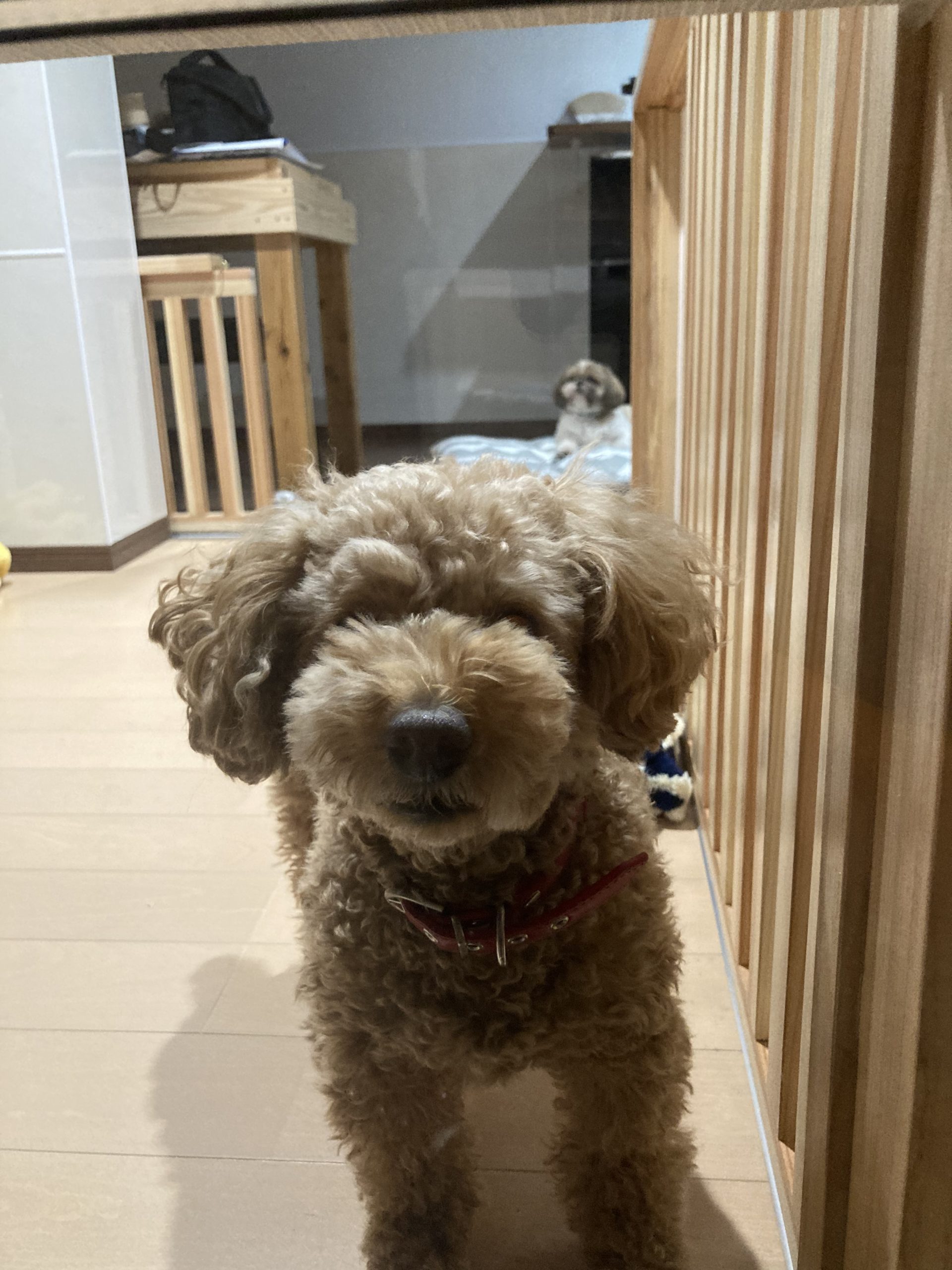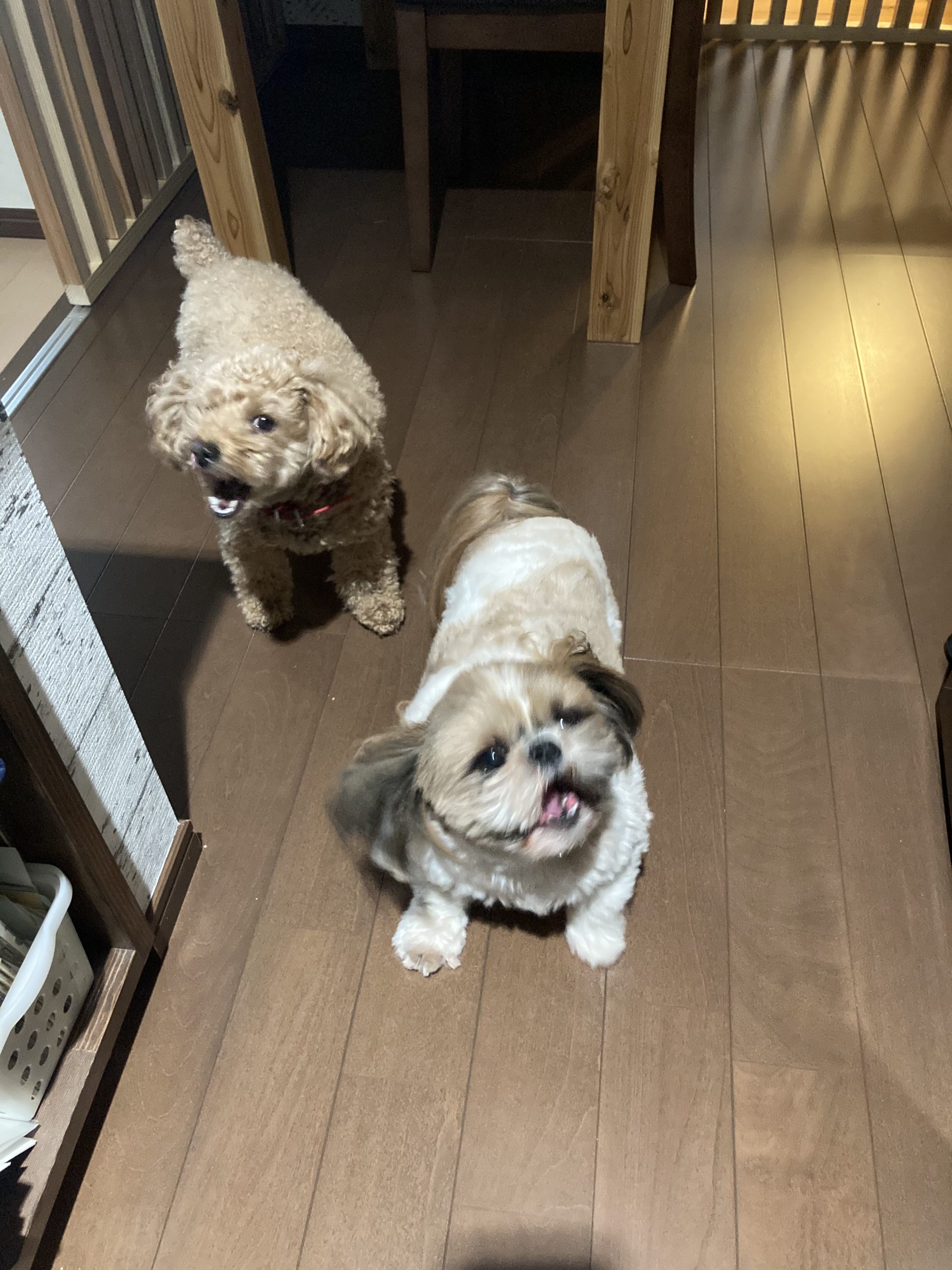 先日トリミングで付けていただいたリボンがお気に入りのようで、外そうとすると怒ります