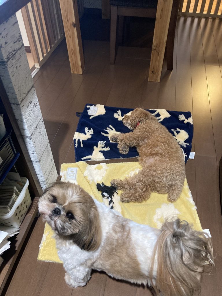 事務所でお利口さんなレオン君と寝てるチョコちゃん